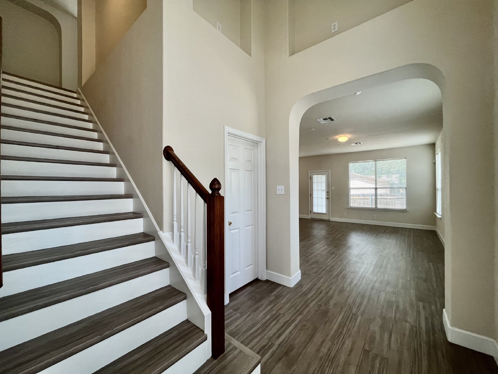 This beautiful 2-bedroom, 2.5-bath townhome offers modern amenities and a convenient layout, perfect for comfortable living. Located in a gated community, this home features high ceilings, vinyl flooring throughout, and a combination living and dining room space. The kitchen is equipped with a breakfast bar, electric stove/range with a glass cooktop, dishwasher, disposal, microwave, pantry, and ice maker connection, making it perfect for both cooking and entertaining.